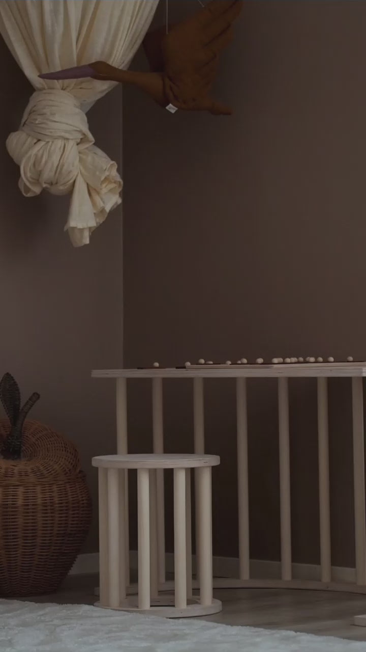 The LUOTO stool seamlessly transforms into a practical workstation when paired with the LUOTO climbing arch, making it perfect for your childβs activities like crafting, drawing, or homework. This versatile setup encourages creativity, focus, and fine motor skills, offering a comfortable and stylish space for your child to explore their imagination.